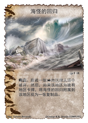 地区牌从场中被弃。然后,如果该地区为独有地区卡牌,将海怪的回归附属到该地区视为一张复制品。