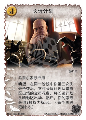 :在同一阶段中你第三次失去争夺后,支付长远计划从暗影区出场的金币花费,将长远计划从暗影区出场。然后,你的家族获得3枚权力标记。(每个阶段限制1次)