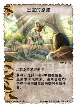 牌组中的丹妮莉丝是杀人的那个,韦赛里斯是弃附属的那个,牌组里还少卡奥1张,马王3张,洛恩河的船夫3张,王室的恩赐改为血肉由烈火构成